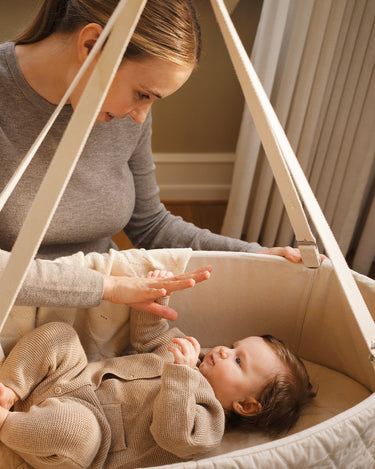 Prepare a calm and quiet area of your home for the cradle to be used in – this will help deliver a great sleeping environment. Try placing a familiar item such as a muslin cloth or stuffed toy in the cradle for a few days before you introduce it to your baby. This familiar smell will help baby adapt to their new sleeping surrounds.